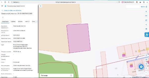 Название: Земельный участок из земель населенных пунктов с кадастровым номером 31:25:0907002:390, площадью 10000 кв