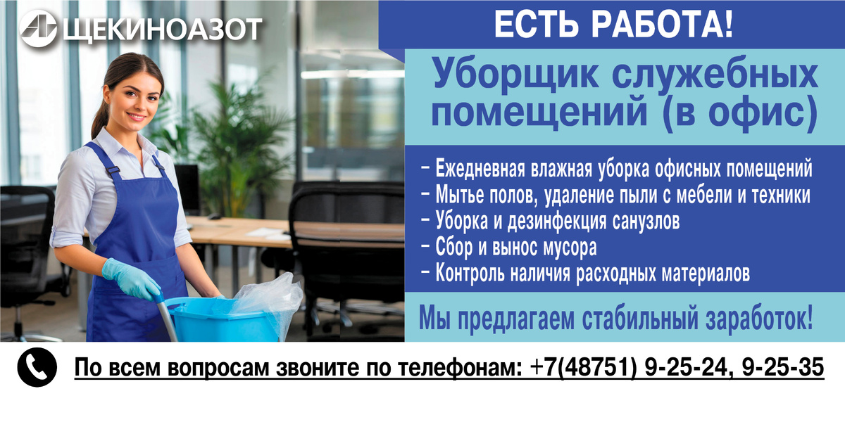 Уборщик служебных помещений (в офис) График: 5/2 ✅ Обязанности: Ежедневная влажная уборка офисных помещений Мытье полов, удаление пыли с мебели и техники Уборка и дезинфекция санузлов Сбор и вынос мусора Контроль наличия расходных материалов ✅ Требования: Ответственность и внимательность к деталям Пунктуальность и аккуратность Готовность к физическому труду Опыт работы приветствуется Мы предлагаем стабильный заработок! 📌 По всем вопросам звоните по телефонам: +7(48751) 9-25-24, 9-25-35.