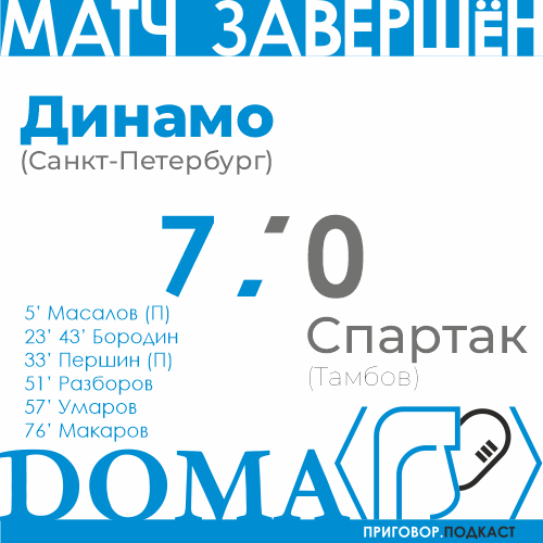 Обидное повреждение получил Баев, пришлось делать вынужденную замену. На поле вышел Разборов. Перестановок не наблюдалось, продолжили играть как до гола. К 25 минуте зарабатываем очередной стандарт, коих накопилось очень много. Угловой подал Масалов, думаю он увидел грубую ошибку защитников Спартака, которые оставили Бородина одного в метре от линии вратарской. Видно это было даже с Нарвских ворот. Дмитрий удвоил счет на табло, а мы продолжили играть как будто горят нули.