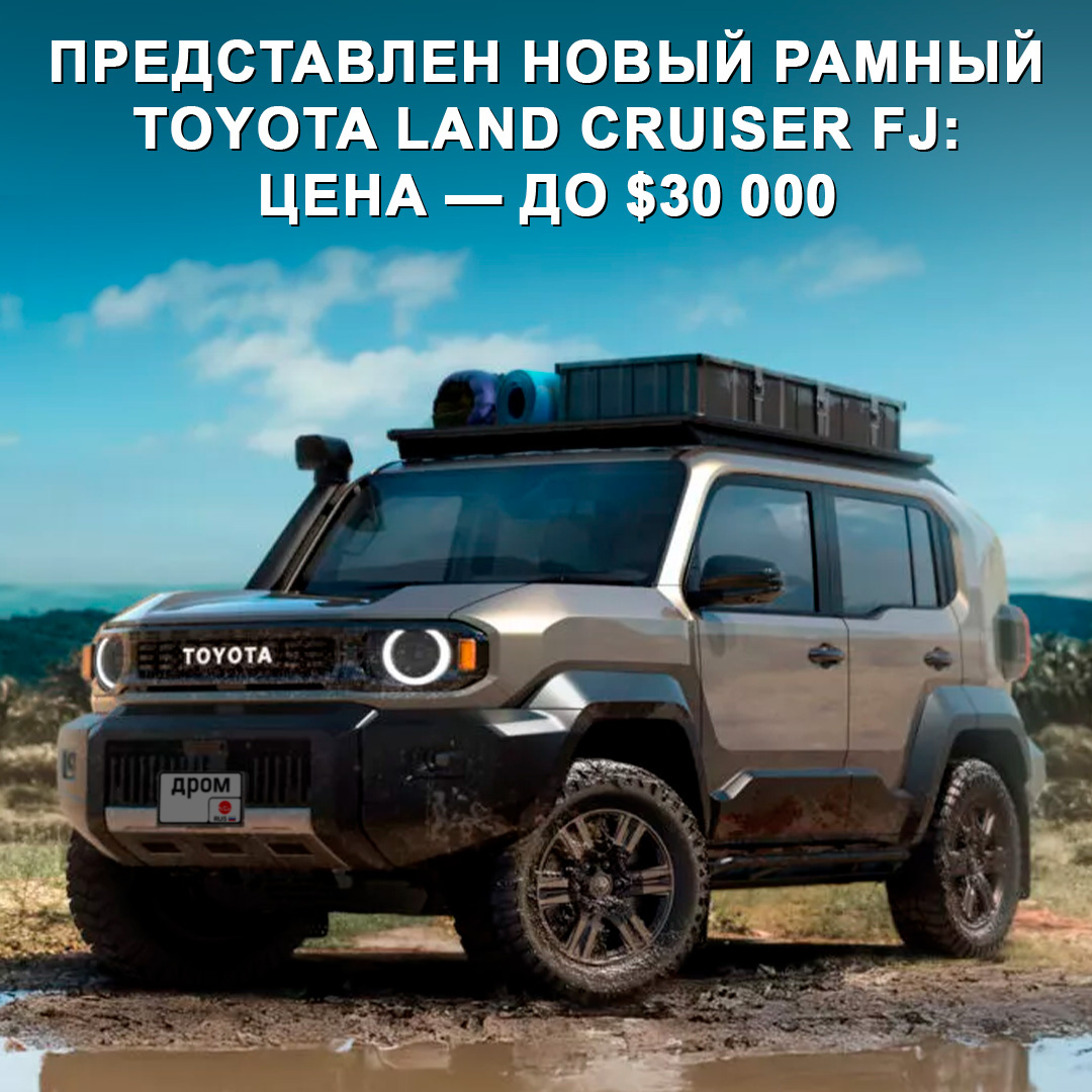Внедорожник построен на рамной платформе от пикапа Hilux. Он ориентирован на рынки Азии, Ближнего Востока и Латинской Америки. Старт продаж — середина следующего года. Характеристики: → Габариты — 4 575 х 1 855 х 1 960 мм, колёсная база — 2 580 мм. → Мотор — бензиновый 2TR-FE 2,7 л на 161 л.с. (246 Нм). → Коробка — АКПП-6, привод — подключаемый полный. Будут доступны два варианта оформления передка — в современном корпоративном стиле и в ретродизайне с круглыми фарами. Бамперы выполнены легкосъёмными, чтобы их можно было менять после покатушек. Среди аксессуаров для модели — силовые пороги, шноркель, багажник на крышу и панели для крепления снаряжения. В салоне — прочный пластик, цифровая приборка, мультимедиа и физические кнопки для климата. Крузак мечты или слишком уж компактным вышел? 🤔 #дромновость #toyota #landcruiser #fj #рамник