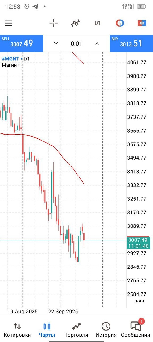 Магнит.После отработки уровней 3200-3000.На таймфрейме 1 день сформировалась фигура перевёрнутая голова с плечом.Что сигнализирует о развороте тренда или как минимум о хорошей коррекции вверх.Цель 3400.При пробое 3500,следующая цель 4000.Всем успешных трейдов.