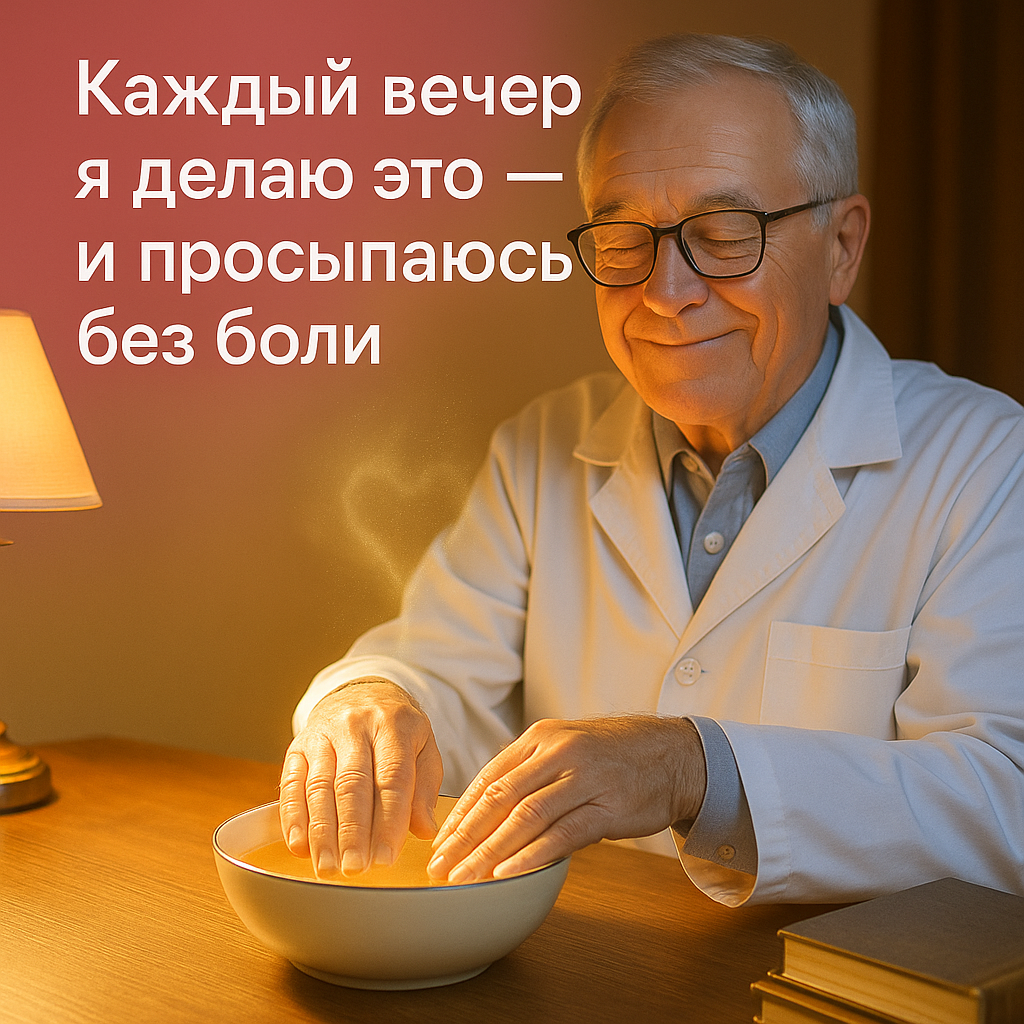 Поэтому уже более 40 лет он выполняет свой вечерний ритуал — простое, тёплое действие, которое возвращает лёгкость суставам, расслабляет мышцы и успокаивает нервную систему. Каждый вечер, ровно в девять, Сергей Алексеевич включает настольную лампу, наливает в миску тёплой воды и опускает туда руки.
