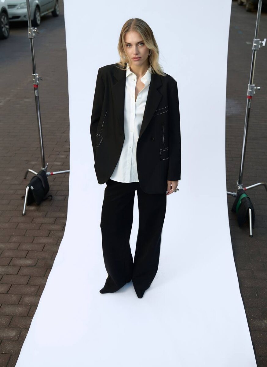 Вторник – это не вызов, а ваш выход. Встретьте его в безупречном образе, и грядущая неделя покорится с первой минуты. Главный акцент – в деталях. Добавьте пару классических лодочек или стильных мюли – и ваш образ кристаллизуется до совершенства. Жакет с декоративными контрастными швами Блуза с обьемными рукавами Брюки с контрастными лампасами
