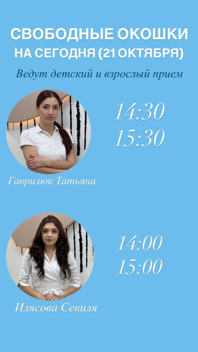 Свободные окошки на сегодня к нашим врачам-стоматологам 🦷