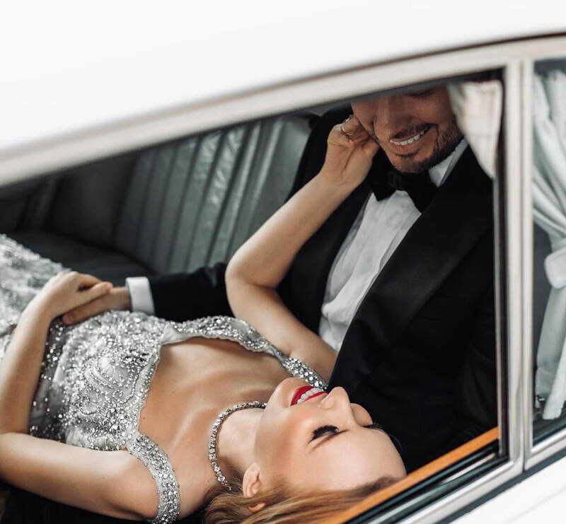 Жених и невеста — пара, и это должно находить отражение в их образах. Их стиль должен гармонировать. Легкий способ этого добиться — свадебный костюм и платье, выполненные в одной цветовой гамме. Профессиональный уровень — образы, образующие единый стилистически согласованный ансамбль:
