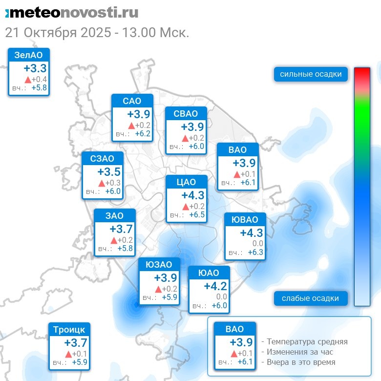 В 13:00 в Москве было от +2.7°C до +4.6°C, средняя температура +3.9°C #погода #Москва #осень #температура #21октября #вторник Перейти на сайт Прогноз погоды на 14 дней