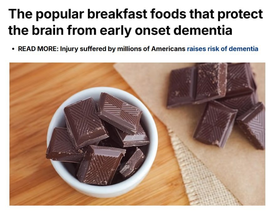 ⚡️ Тёмный шоколад — флавоноиды усиливают кровоток и сохраняют когнитивную молодость.