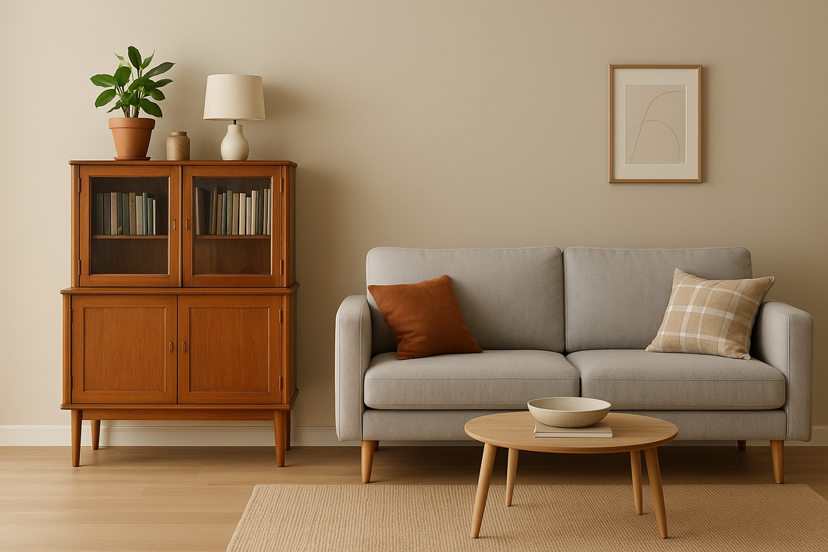 - Оставить винтажный сервант + купить новый диван и журнальный столик