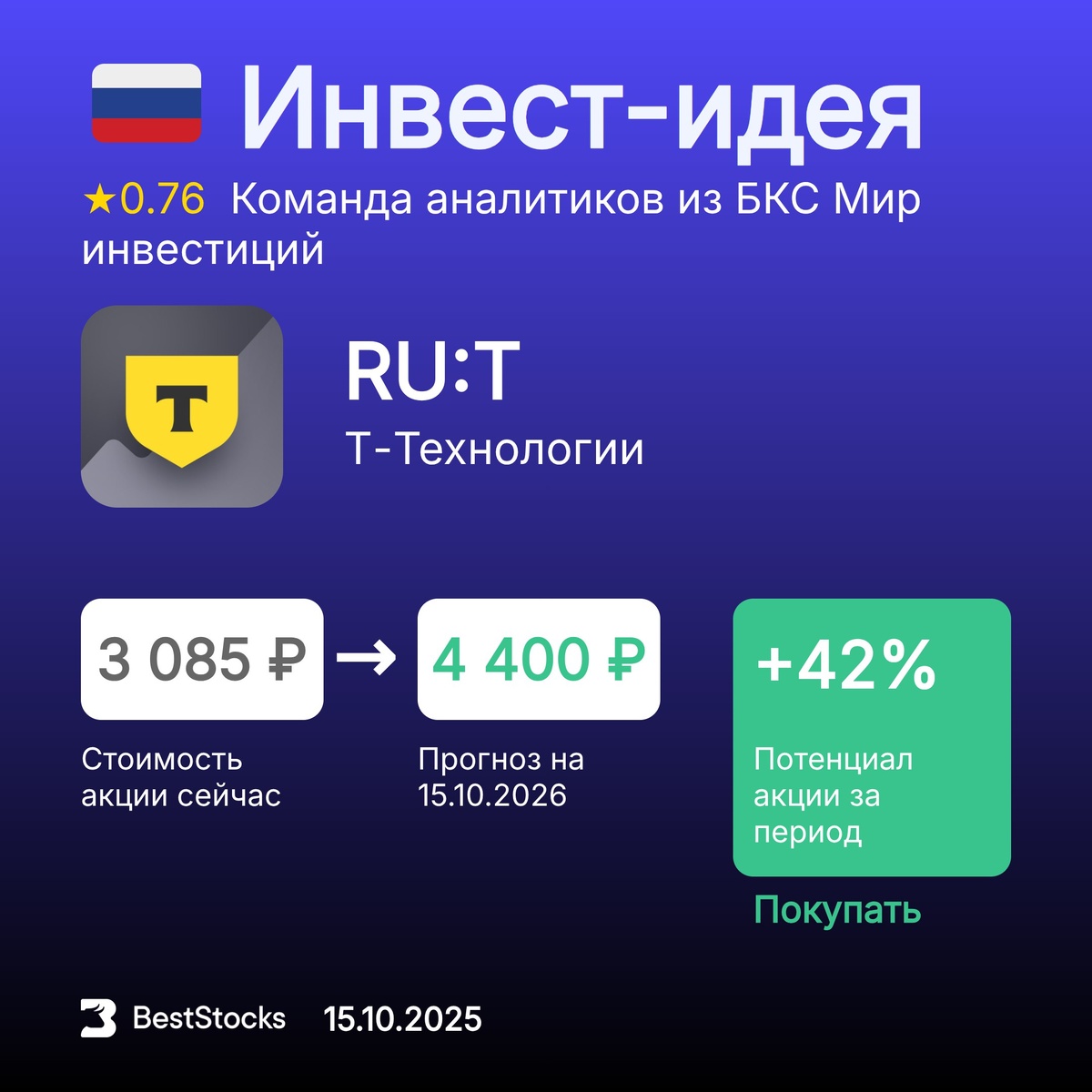 🇷🇺 Инвест-идеи по русским акциям Прогноз по акции Т-Технологии Прогнозная цена: 4400 ₽ (+42%) Рекомендация: Покупать Дата прогноза: 15.10.2025 Прогноз до: 15.10.2026 Инвест-компания: БКС Мир инвестиций Автор прогноза: Команда аналитиков Ещё рекомендации на сегодня → ••••• 🎯 Вы знали, что в разделе с криптовалютами можно узнать цены, динамику и ключевые показатели по каждой из доступных криптовалют абсолютно бесплатно?