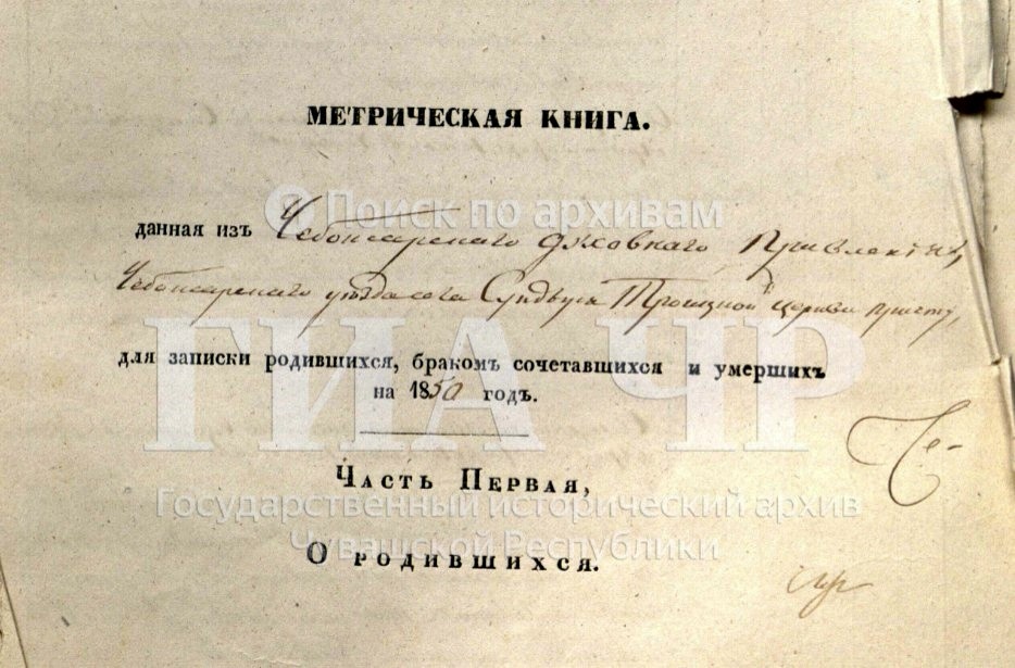 Метрические книги о рождении, браке и смерти за 1850 год. 1 января 1850 - 31 декабря 1850. ГИА Чувашской Республики, фонд №225, опись №3, дело №119, стр. 480 скан. Метрическая книга, данная из Чебоксарского духовного Правления, Чебоксарского уезда села Сундыря Троицкой церкви причту для записки родившихся, браком сочетавшихся и умерших на 1850 год. Часть первая. О родившихся. Стр. 503 скан. Ноябрь. № 46. 11 числа родилась. 13 числа крещена. Анна. Родители: Чебоксарского уезда села Сундыря казённый крестьянин Иван Ефимов, и законная жена его Екатерина Михайлова, оба православного исповедания. Восприемники: Того ж села казённого крестьянина Ефима Феодорова дети: сын отрок Александр, и дочь девица Елисавета Ефимовы. Таинство крещения совершил Священник Михаил Васильев Самуилов. Диакон Андрей Семёнов Денисов. Дъячек Афиноген Андреев Подобедов. Пономарь Христофор Иванов Певунов. https://yandex.ru/archive/catalog/f5183ecc-4c67-4d8b-8f91-ad36b17e81f0/503