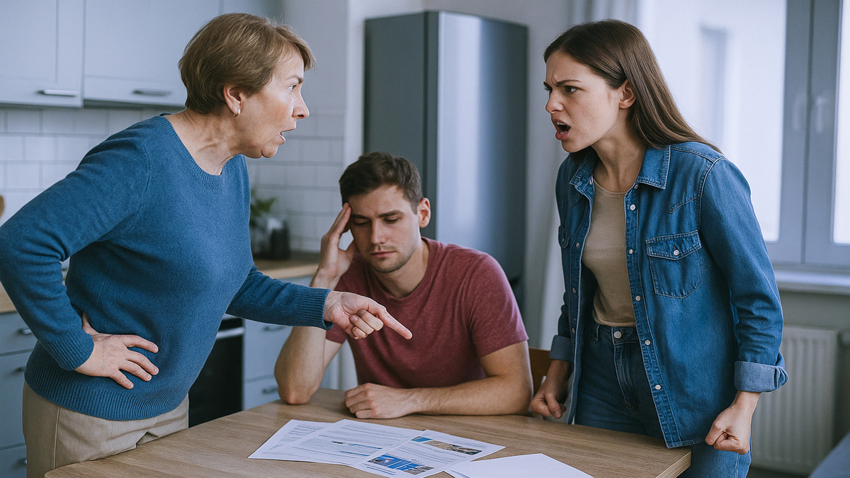 Максим стоял посреди кухни, растерянный, бледный. Метался взглядом между женой и матерью.