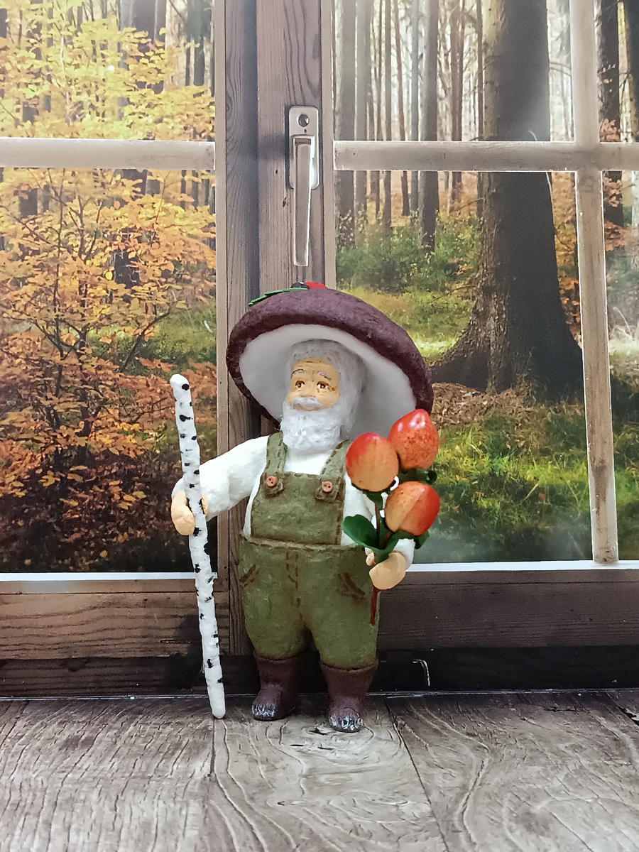 Приветствую грибников))), и не только уважающих сбор даров леса, но и любителей сотворить грибочки из ваты. С завтрашнего дня стартует показ моего завершающего осенний сезон мухоморчика. А сегодня я хотела бы напомнить о двух других куколках на эту же тему. Первый, чье фото стоит заглавным, - Старичок-боровичок. Это одна из моих куколок, которыми я осталась полностью довольна. И работа шла гладко и легко, и сложностей с выстраиванием фигурки не возникало. Видимо, есть такие игрушки, которые сразу рождаются с душой и характером. Какие-то делаешь долго, с неожиданными препятствиями - то вата ложится буграми, то цвет начинает мигрировать, то вообще образ вырисовывается не тем, который представлялся в начале! Но этот лесовичок проявил себя абсолютным покладистым добряком. Или я уже подзабыла процесс, и он всё равно сопровождался сложностями)))? Как бы то ни было, творческие моменты с Боровичком оставили у меня самые теплые впечатления от работы. Приглашаю вас пройти в подборку, где содер