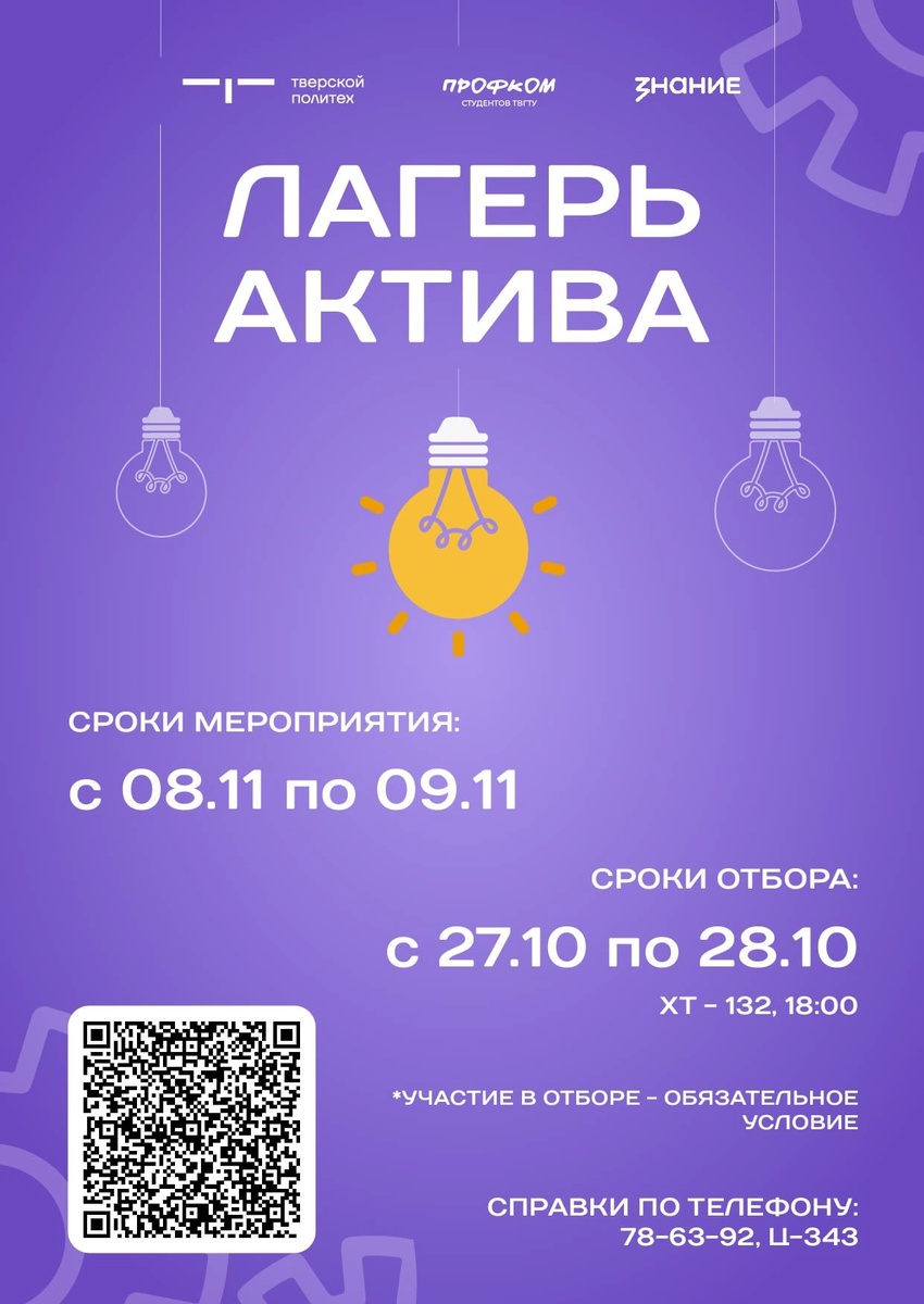 ⚡Начинается регистрация на выездную образовательную программу «Лагерь актива » На программу приглашаются студенты ТвГТУ всех курсов! ❗Для участия необходимо заполнить форму и пройти отбор 27 и 28 октября 2025 года в 18:00 в Хт-112 📝Регистрация открыта до 26 октября 2025 года включительно по ссылке: docs.google.com/forms/d/e/... Не упустите уникальную возможность принять участие в мероприятии, о котором будете вспоминать всю жизнь! 📆Выездной «Лагерь актива» пройдет с 8 по 9 ноября 2025 года на одной из лучших баз отдыха Тверской области! 🎉Вас ждут новые знакомства и встречи с друзьями, уникальные тренинги и мастер-классы, работа в команде над интересными проектами. И это – лишь малая часть программы, для вас готовится много сюрпризов и интересных неожиданностей! Ждем вас! Будет интересно, познавательно и весело! #ТвГТУ #Политех #взлетнаяполоса #Общество_Знание #РоссийскоеОбществоЗнание