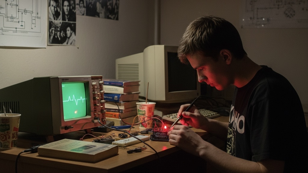 Представь себе общагу МИЭТ-а или МАИ где-то в 2005-м. В комнате пахнет канифолью, гудит старый советский осциллограф С1-94, а на столе, рядом с пачкой сигарет, лежит крошечная синяя платка. На ней – чип с паучьими ножками и логотипом «A». Это ATmega8 из семейства AVR. Она моргает светодиодом по программе, которую студент залил пять минут назад. Для него это магия, и он ещё не знает, что этот дешёвый американский контроллер – прямой потомок тех, на ком крутится половина индустрии, и что его «дом» – буквально в паре километров, в «чистых комнатах» Зеленограда.