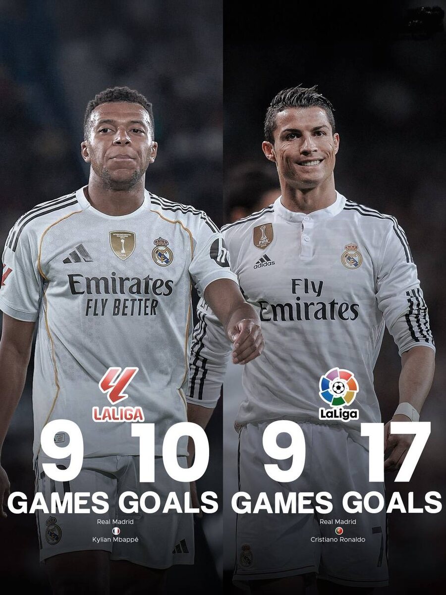 🇪🇸🐢 Килиан Мбаппе — первый игрок «Мадрида», забивший более 10 голов в 9 матчах 🇪🇸 LALIGA после Роналду.🐐