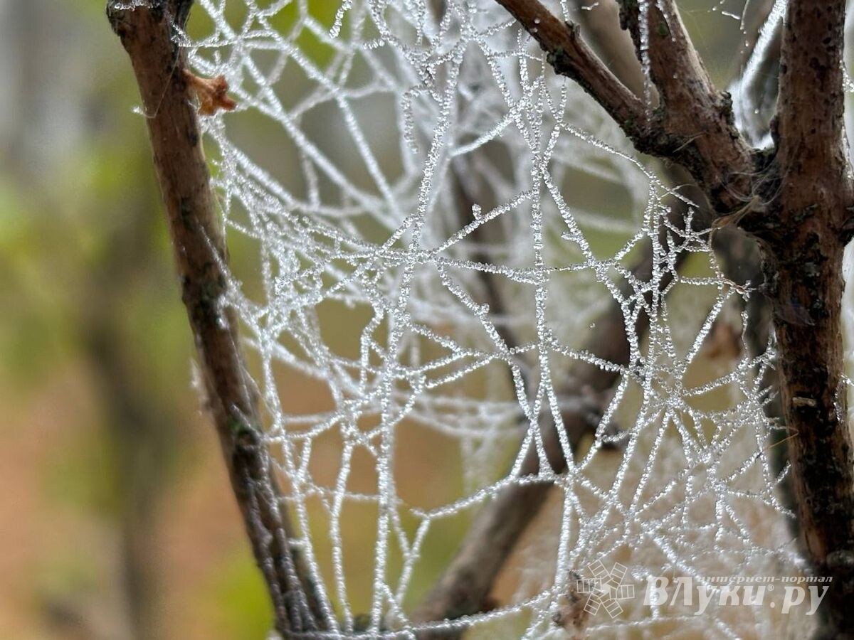 ✨ Жительница города прислала в редакцию фотографии ледяных «паутинок», покрывших кусты и деревья.