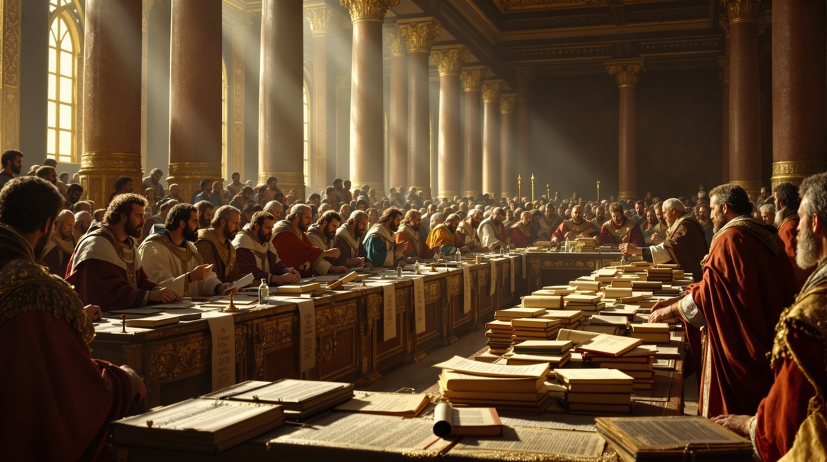 Никейский собор превратил многогранное духовное движение в жёсткую доктрину. Император Константин хотел религию, которая объединит империю — а не мистическую школу, где каждый сам себе пророк. Поэтому выбрали четыре удобных евангелия, где чётко расставлены иерархии: Бог → Христос → церковь → народ.