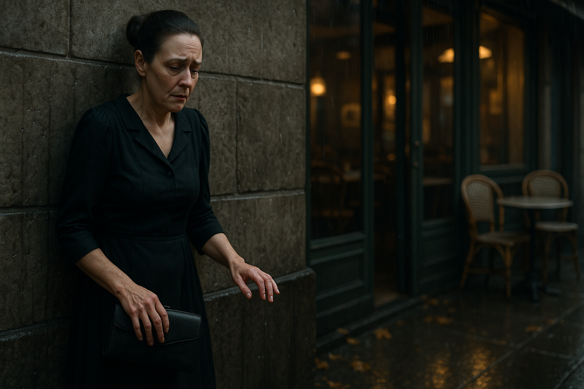 Она вышла из кафе под шёпот гостей. На улице прислонилась к стене, закрыла глаза. Руки дрожали.