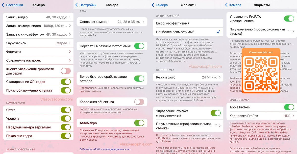 Эти настройки помогут вам сделать кадр максимально эффектным, четким. Но помните, что многие продвинутые функции камер в телефоне занимают огромную часть памяти. И если вы снимаете немалое количество видео, и у вас нет хотя бы 1 ТБ встроенной памяти, то вероятнее всего вы столкнетесь со сложностями в эксплуатации вашего iPhone. Хотите снимать красивые видео прямо на телефон? Я с радостью приглашаю вас на уникальный курс по эффектной мобильной съемке. Ваша, Софья Власова💙