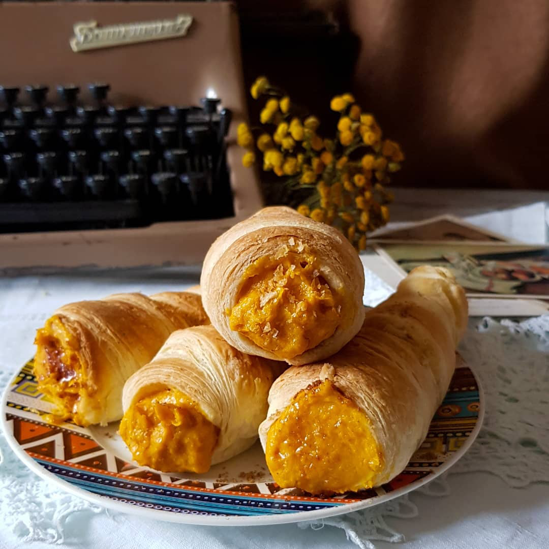 Хотите разнообразить классические трубочки необычным кремом? Попробуйте этот вариант с тыквой — он покорит вас бархатистой текстурой и тёплым осенним вкусом! Первым делом нужно приготовить сами трубочки. Нам понадобится дрожжевое слоеное тесто. Чтобы тесто сохранило свою эластичность и не пересохло, переложите его на ночь в холодильник прямо в упаковке. Такой щадящий способ обеспечит равномерное оттаивание — и в итоге тесто будет отлично раскатываться. Подготовка Выпекаем трубочки Формирование трубочек Выпечка Готовые трубочки снимите с конусов, переложите на решётку и остудите без накрывания. Так они сохранят свою аппетитную хрусткость! Ингредиенты Как приготовить: Подготовьте тыкву: запеките её до мягкости. Это можно сделать в духовке или быстро — в микроволновке. После запекания дайте остыть. Обработайте сухофрукты: Создайте основу крема: Доведите до идеальной текстуры: Важно! Консистенция должна быть такой, чтобы крем легко набирался в кондитерский мешок и не вытекал из трубочек.