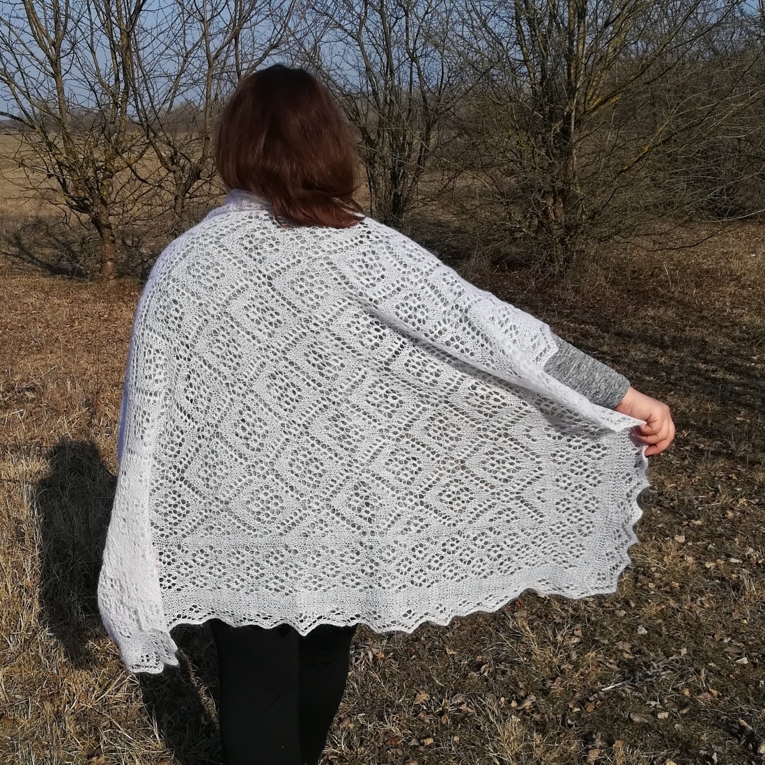 Каждый год я выпускаю один новый платок в русском стиле - особенный, со своей историей, характером и настроением. Всего их уже пять, и каждый связан по моей собственной схеме. Я называю их платки в русском стиле. Они основаны на классических оренбургских узорах и классическом ажуре, это микс. Микс узоров современности и классики. Мои схемы в таких платках строятся как классический ажур. Нет специальных схем с другими значками. Любая схема читаема. Мне нравится форма, построение узора, сами платки как бы это банально не звучало. В платке есть камерность, близость, что-то домашнее. Соприкосновение с прошлым и духом того времени. Я хотела сделать эти вещи понятными и доступными современным вязальщицам, которые хотят тонкий кружевной платок, но не готовы на месяцы кропотливой работы. Стараюсь делать платки легче по объему, но в последнее врем получаются более масштабные работы. Видимо расту вместе со с своими работами. ✨ Один платок в год. Я никогда не выпускаю модели серийно. За каж