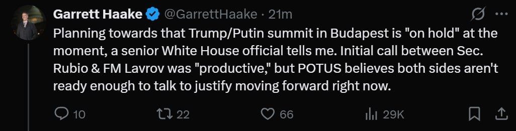 ‼️🇺🇸🇷🇺 Подготовка к саммиту Трампа и Путина в Будапеште «приостановлена», - источник