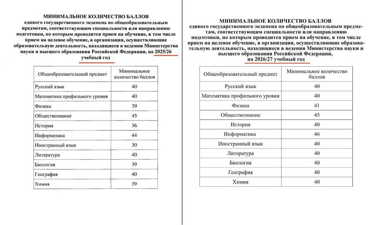 Поступить в вуз станет ещё сложнее. Учебные заведения повысят минимальные проходные баллы ЕГЭ на 2026–2027 учебный год. По всем предметам требования вырастут на 1–4 балла, а по иностранному языку — сразу на 10, с 30 до 40 баллов.
