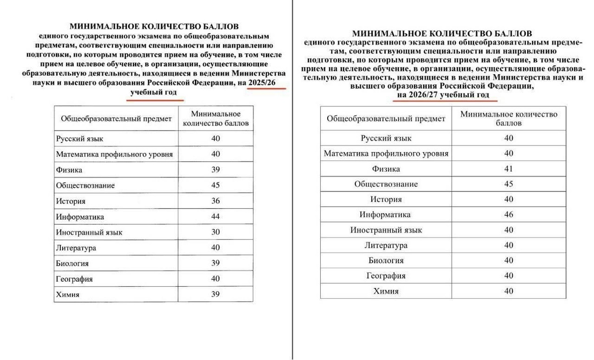 Увеличат проходные баллы ЕГЭ для поступления в вузы в 2026–2027 учебном году. В российских учебных заведениях ожидается повышение минимальных проходных баллов ЕГЭ. По многим предметам требования вырастут на 1–4 балла, а по иностранному языку — на 10, с 30 до 40 баллов. ────────── ⚡️Важные новости – без лишнего шума!⚡️ Подпишись на канал и получай только суть: оперативно, чётко, по делу! 👉 ИнфоСплетник | @infospletnik