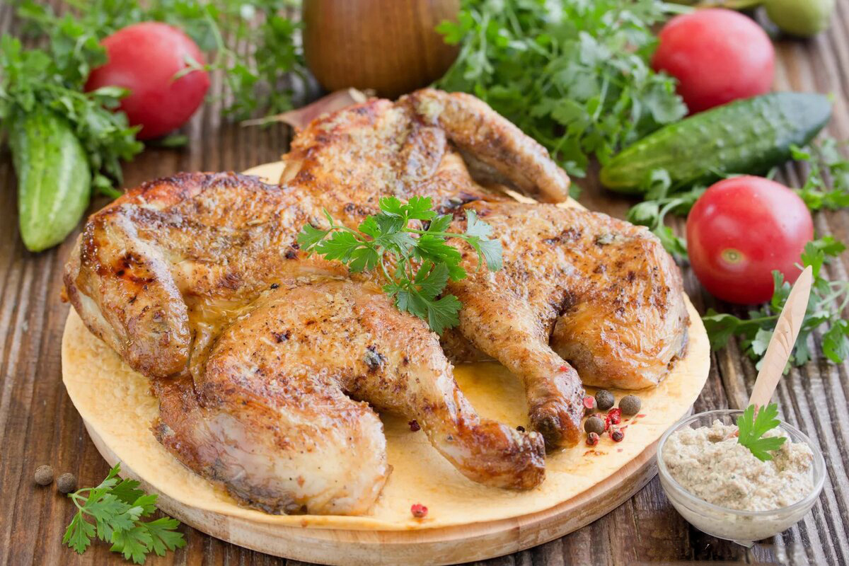 Цыпленок табака с чесночным соусом