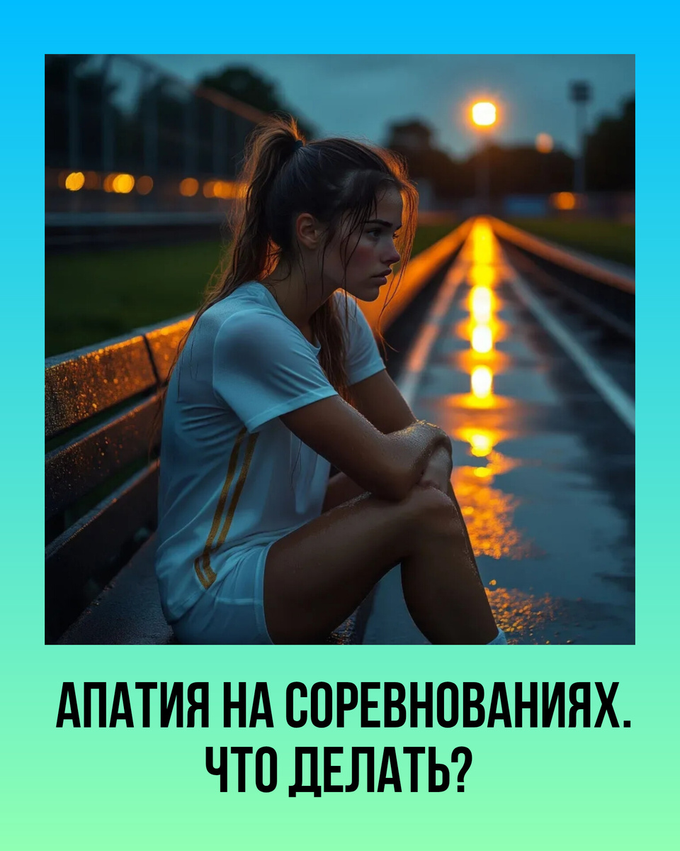 Случай из практики: "на соревнованиях в какой-то момент мне становится всё равно, я чувствую странную пустоту и полное безразличие" Это предстартовая апатия, до которой вы сами себя довели! Да, это сделали вы! И сейчас я расскажу об этом подробнее Апатия — это психоэмоциональное состояние, характеризующееся утратой интереса к происходящему, отсутствием мотивации и снижением эмоциональной реакции на события вокруг. Как понять, что это апатия? Обратите внимание на такие признаки: * подавленное настроение; * отсутствие интереса к соревнованию, отрешенность, внутреняя "пустота"; * вялость, слабость, усталость; * трудности с концентрацией; * замедленная реакция. Причины возникновения Главные причины на соревнованиях: * много мыслей * негативное состояние (тревога, паника, волнение) * неумение настраивать и поддерживать оптимальное состояние; * долгое ожидание, растрата энергии; * перетренированность и физическое истощение; * серия неуспешных стартов; * отсутствие чётких целей и з