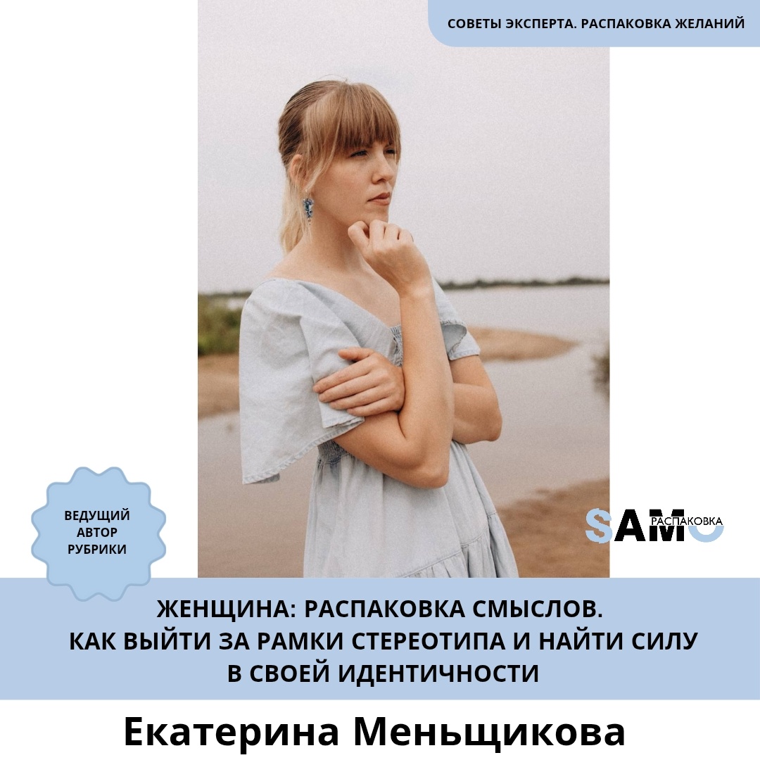 🌟 Автор рубрики «Советы эксперта. Распаковка желаний» Екатерина Меньщикова - основательница продюсерской компании «Дом Sky Fashion», директор группы Sky Fashion, создательница бренда одежды Sheever, эксперт по продвижению независимого авторского творчества. Провела более 100 концертов и 20 авторских арт-вечеров и фестивалей. Проводит личные консультации и сопровождает в продвижении творческих людей любой направленности.
