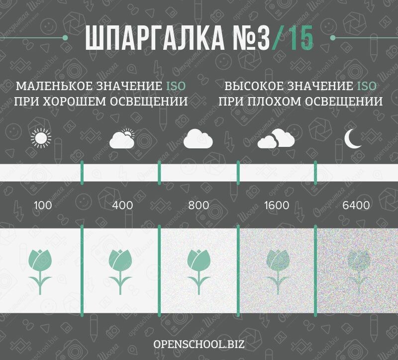 Чем МЕНЬШЕ число (ISO 100) — тем МЕНЬШЕ чувствительность.