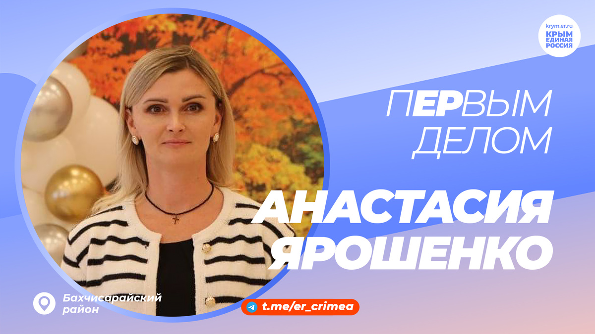 Новой героиней рубрики «пЕРвым делом», в которой мы рассказываем о руководителях партийных ячеек Единой России в регионах Крыма, стала Анастасия Ярошенко - секретарь первичного отделения №581 села Брянское Бахчисарайского района.