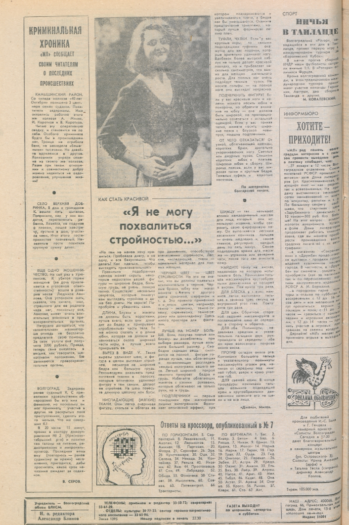 В газете «Молодой ленинец» в январе 1991 года описали несколько последних преступлений, совершенных в Волгоградской области. Так, в Камышинском районе компания мужчин совершила весьма необычную кражу по меркам современного человека — они утащили три центнера семян суданки со склада колхоза, то есть 300 килограмм. Личность похитителей установили. Оказалось, что на преступление пошли работники этого же колхоза. Фото: Госархив Волгоградской области, "Молодой ленинец" №9, выпуск от 26 января 1991 года