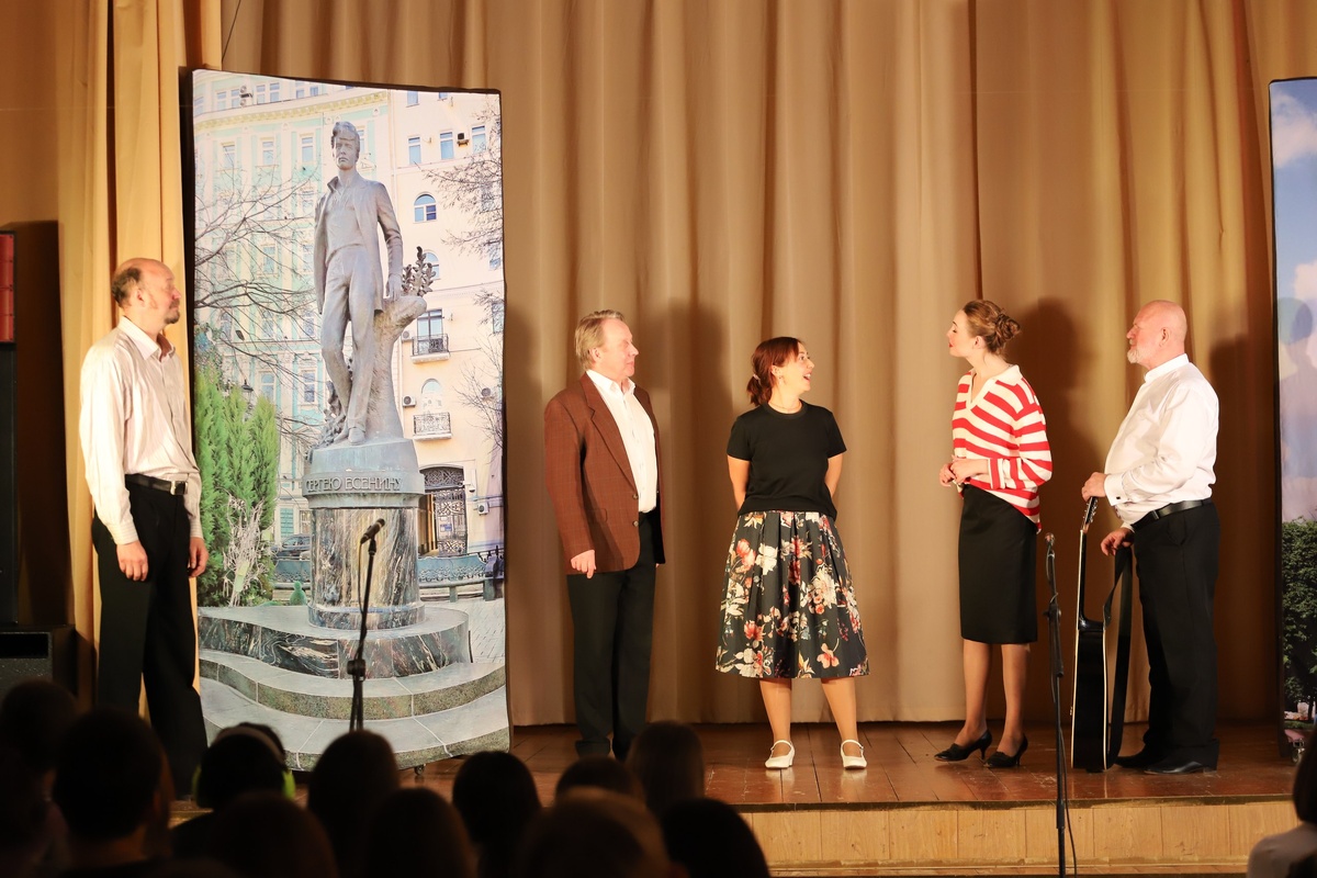 🎭 Поэтический мост сквозь века: «От Пушкина до Есенина по Тверскому бульвару» в стенах школы В честь 130-го дня рождения великого русского поэта Сергея Александровича Есенина, стены нашей школы наполнились особой атмосферой. В гости к нам приехали наши друзья – артисты театра художественной публицистики, чтобы подарить нашим восьмиклассникам незабываемое путешествие по страницам русской поэзии. Спектакль «От Пушкина до Есенина по Тверскому бульвару» стал данью уважения Есенина и всех русских поэтов, чьи строки продолжают жить в наших сердцах. Спектакль позволил ученикам не только лучше понять творчество Пушкина и Есенина, но и осознать, как важно сохранять и передавать культурное наследие. Особое внимание в постановке было уделено именно есенинской лирике. Ребята сопереживали героям его произведений, ощущая всю глубину и боль, радость и надежду, которые так мастерски передавал поэт. Встреча с артистами театра художественной публицистики стала настоящим, живым уроком литературы и нр