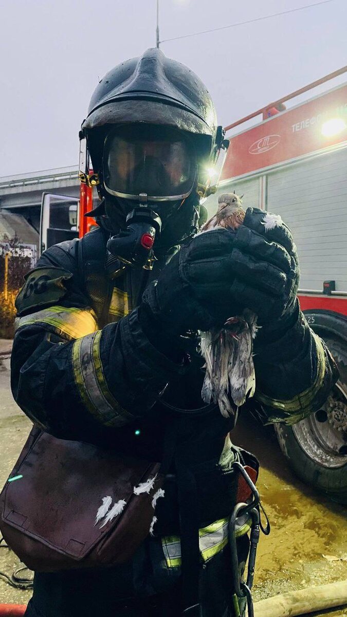 Птицы надышались угарным газом при возгорании склада с пристроенной голубятней. Спасатели эвакуировали птиц, одного реанимировали мини‑маской и вернули хозяину. Жив.