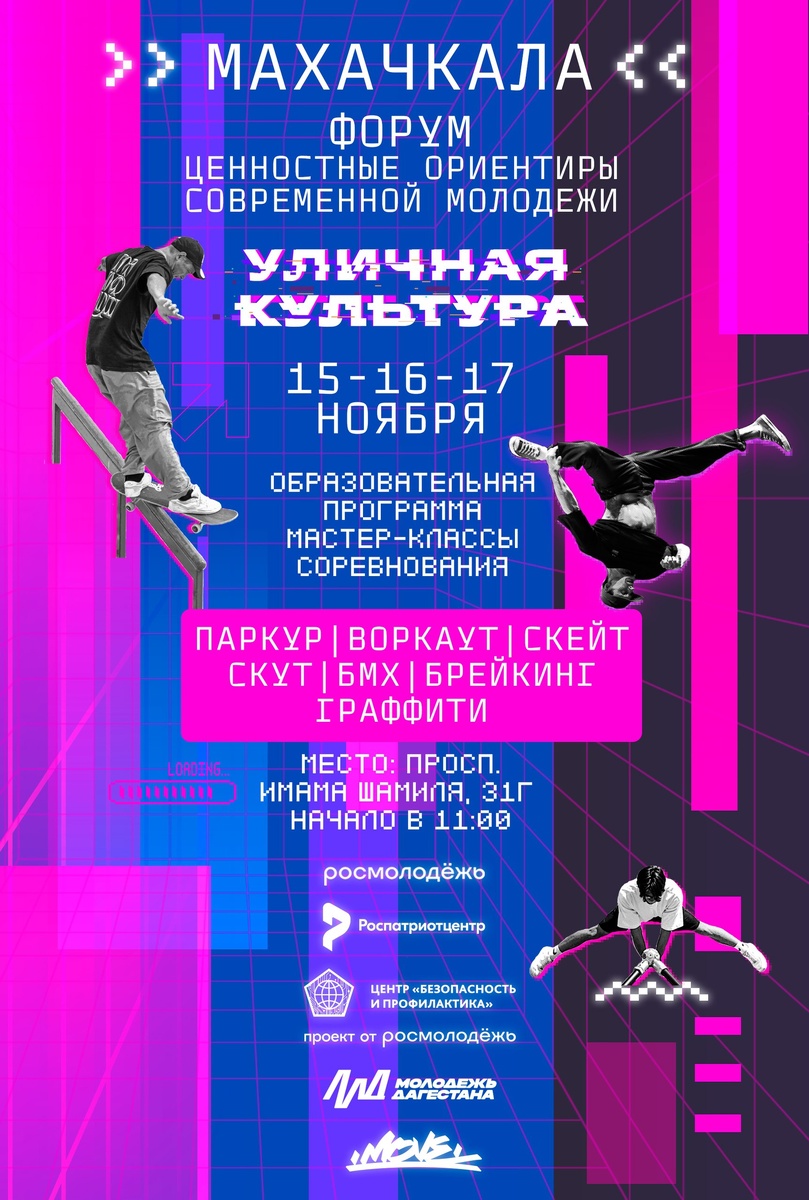 Форум по паркуру в Махачкале 15-17 ноября С 15 по 17 ноября в Махачкале, на проспекте Имама Шамиля, 31Г, состоится масштабное событие — форум «Ценностные ориентиры современной молодёжи». Начало мероприятия запланировано на 11:00. Это уникальное пространство, где энергия улиц преобразуется в мощный импульс для движения вперёд. Здесь молодые люди смогут направить свою силу, стиль и творческие порывы в созидательное русло, становясь примером и вдохновением для окружающих. В программе форума заявлены такие дисциплины, как паркур, воркаут, BMX, скейтбординг, самокат, граффити, хип-хоп и брейкинг. Именно эти направления формируют многогранный дух уличной культуры, побуждая молодёжь к активному, осознанному и творческому образу жизни. Участники, включая трейсеров, смогут не только продемонстрировать свои навыки, но и обменяться опытом, открывая новые горизонты для самореализации. #паркур #площадка Подробнее...