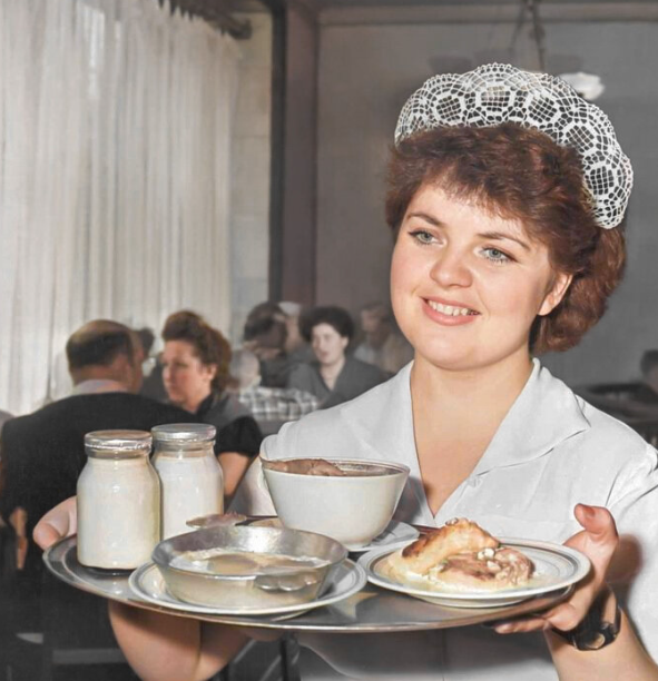 Москва, 1959 год, Пушкинская площадь. Официантка в кафе застыла в кадре, снятом самим Анри Картье-Брессоном — одним из величайших фотографов XX века, основателем фотоагентства Magnum Photos и создателем концепции «решающего момента» в фотографии.