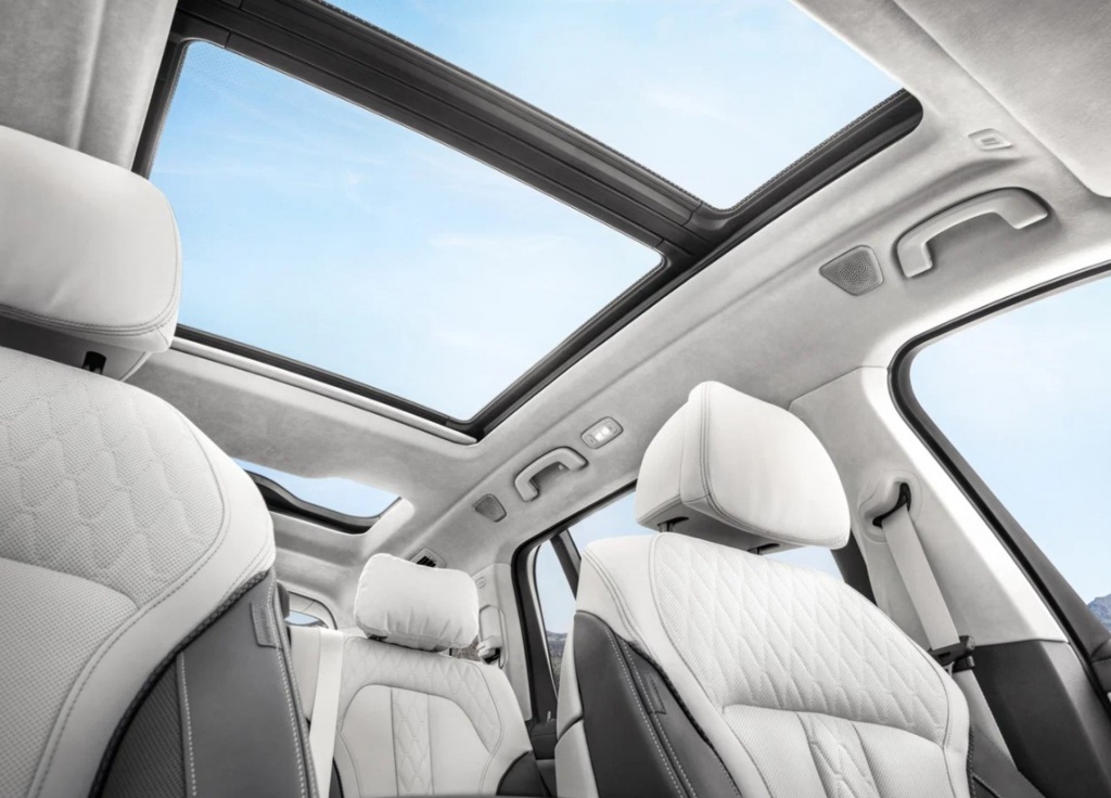 7- или 6-местный просторный салон — с двухцветной кожаной обивкой и панорамной стеклянной крышей. Багажник вмещает 750 л.