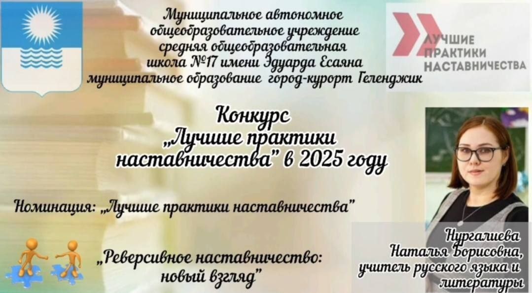 Нургалиева Наталья Борисовна, учитель русского языка и литературы в школе №17 им.Эдуарда Есаяна с.Архипо-Осиповка, стала лауреатом в краевом конкурсе «Лучшие практики наставничества» в 2025 году. Тема конкурсной работы: «Реверсивное наставничество: новый взгляд!» Всего в конкурсе приняли участие 82 педагога.. Источник: https://t.me/school17gel/4447 💬 Наш чат для общения 🚀 Подписаться на Архипка Live 📥 Прислать фото, видео, новость 📲 Архипка Live в MAX