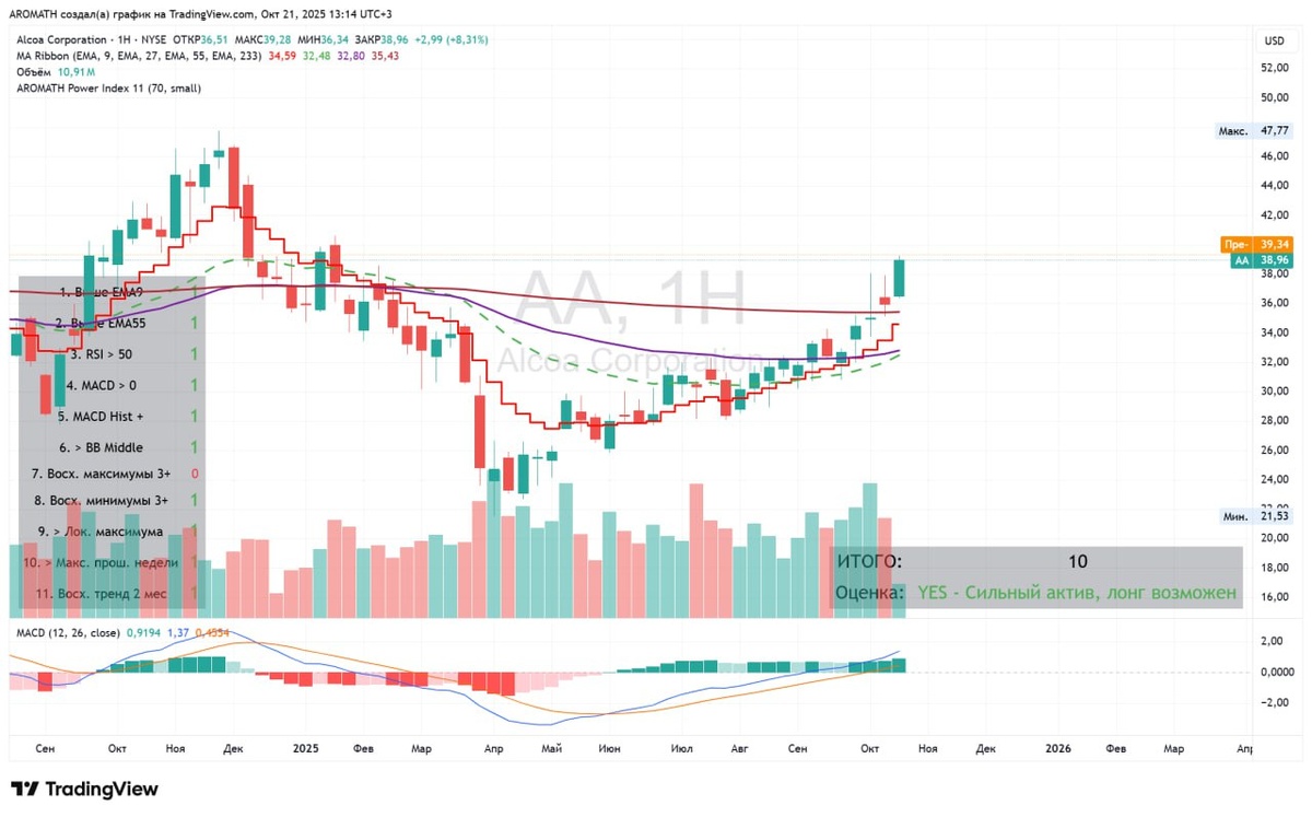 🔥 На +8% уже выросла акция #AA Alcoa - одна из идей с БМВ Аромат от 16.10.2025. Раздаем максимум пользы бесплатно. Запись Большого и Мощного Вебинара доступна по ссылкам: Смотреть на Ютуб с тайм-кодами: https://youtube.com/live/ojAHtQfnfgo?feature=share Смотреть в ВК: https://vkvideo.ru/video-226164230_456239304