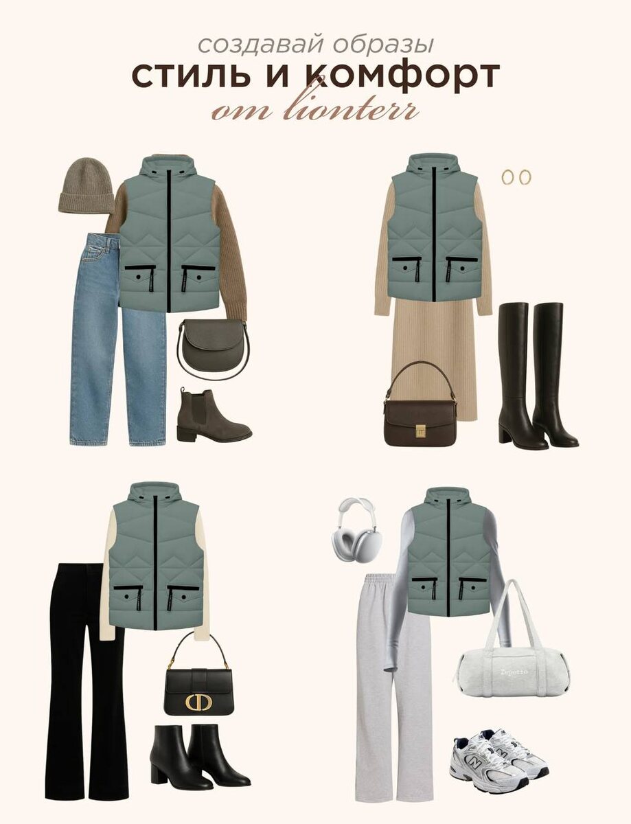 А вот еще несколько идей для стильных сочетаний с одним из наших жилетов 🤩