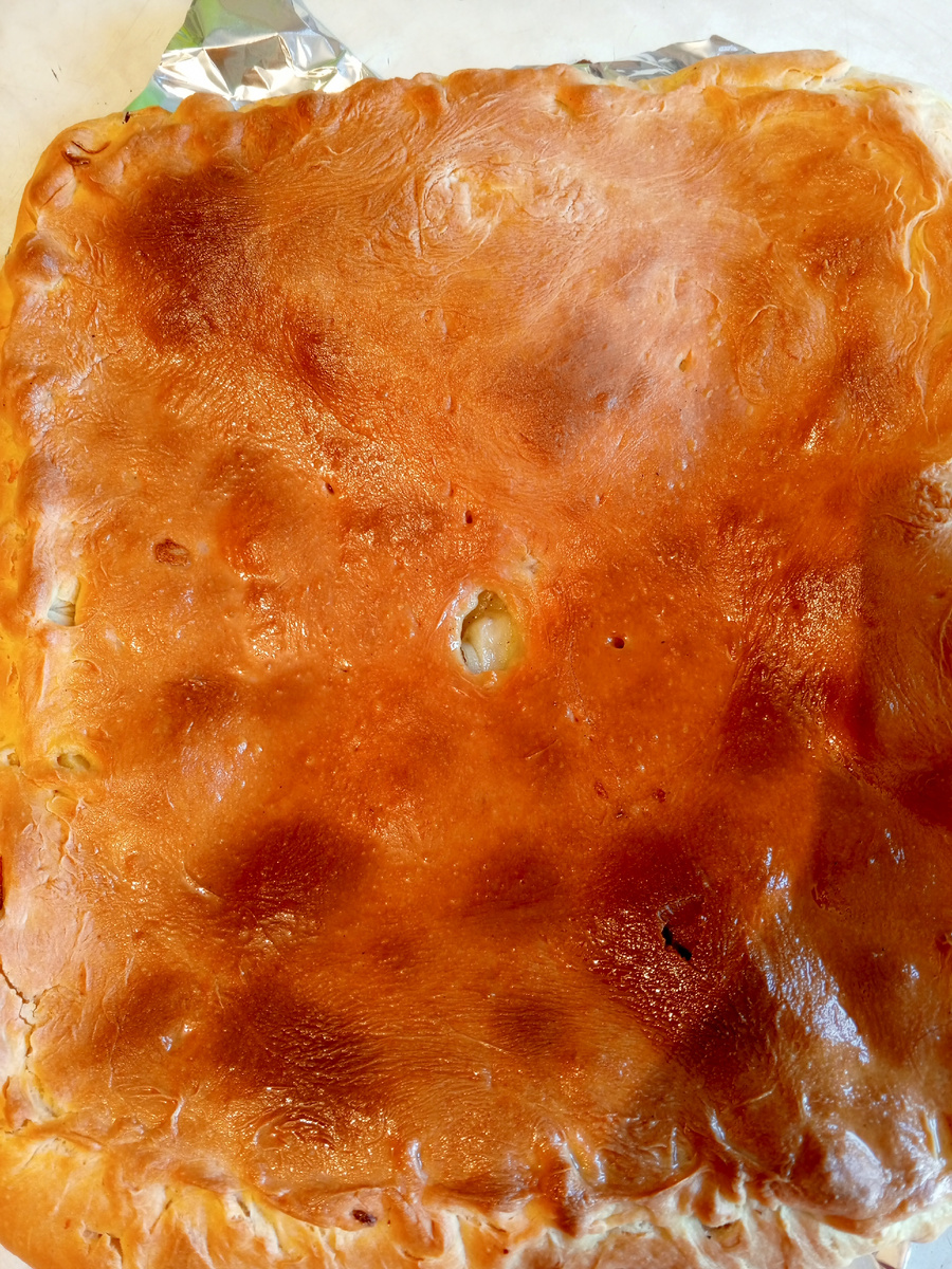 Добрый вечер. Вчера не писала статью,нет вдохновения.Бывает такое,вроде все нормально, а настроение паршивое. Решила вчера постряпать пирог с картошкой.Замесила тесто,все сделала по дому что надо было сделать и пошла на прогулку. Правда чувствую себя неважно,усталость не проходит.Решила погулять на улице,может полегче станет.У нас дома душно. Хоть окна постоянно открываем, проветриваем. Сначала думала пройду маленький круг,потом пошла на большой.Но честно скажу так устала как будто физически работала. Встретила знакомую женщину,вместе росли в деревне,долго с ней разговаривали прямо на тротуаре. Домой пришла ,испекла пирог ,поела,выпила таблетки и больше ничего не делала,просто смотрела телевизор. Такие пироги пеку еще с мясом и картошкой.Мясо нарезаю на тонкие пластины,немного отбиваю,солю перчу и кладу поверх картофеля.Так же добавляю репчатый лук.Папа любил такие пироги с салом.Раньше пекла ему обязательно с салом отдельно для него пирог.Сама я вареное сало не люблю.Да муж и сы