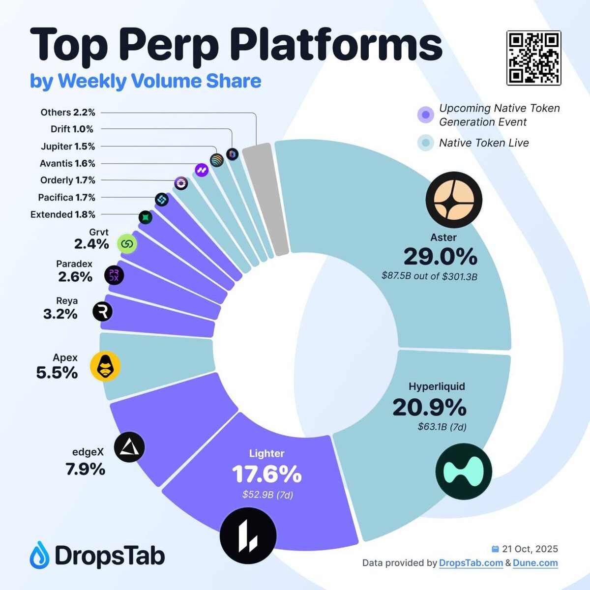 🔸Доля недельного объема ведущих платформ Perpetual-фьючерсов