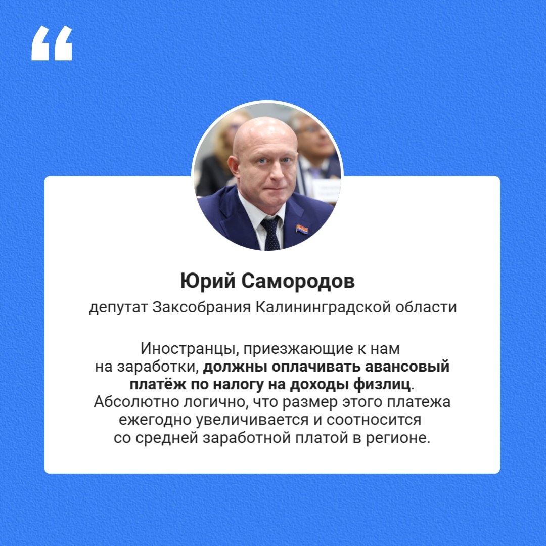 💬 Прокомментировал изданию «Клопс» принятие депутатами Заксобрания регионального закона «Об установлении коэффициента, отражающего региональные особенности рынка труда на территории Калининградской области, на 2026 год». 📊 Иностранцы, приезжающие в наш регион на заработки, в следующем году будут платить за трудовой патент на две тысячи больше. Это плюс 163 млн рублей в бюджет Калининградской области. 🔗 Подробнее — на «Клопсе». #калининградскаяобласть #налоги #бюджет #ер39