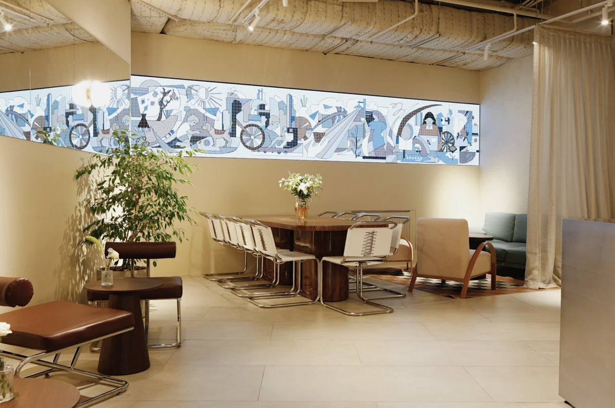 Когда ретро заговаривает на современном, где-то рождается одна кофейня «Зацепи кофе». И в этот раз — в самом сердце столицы. «Зацепи кофе» в Москва-Сити — первая наша кофейня в Москве, к которой мы шли несколько лет. И это того стоило: теперь мы в центре делового квартала, чтобы напомнить — даже в спешке мегаполиса есть время для маленьких радостей. Её интерьер выполнен в стиле неовинтаж, и это не про копирование старого, а про уважение к истории. В наших интерьерах неовинтаж основан на сочетании чистых форм, минимализма и индустриальных деталей, дополненных теплыми ретро-акцентами. Например, центральным элементом этой Зацепи стал великолепный мозаичный лайтбокс с отсылкой к советскому искусству, в котором мы спрятали собственный сюжет. А в интерьере — фирменные тёплые оттенки, бетон и дерево, винтажная мебель и зеркало дизайна Zieta. Пространство просторное и продумано до мелочей: есть места для тихих разговоров, большой общий стол для встреч компанией и работы, уютные зоны для интров