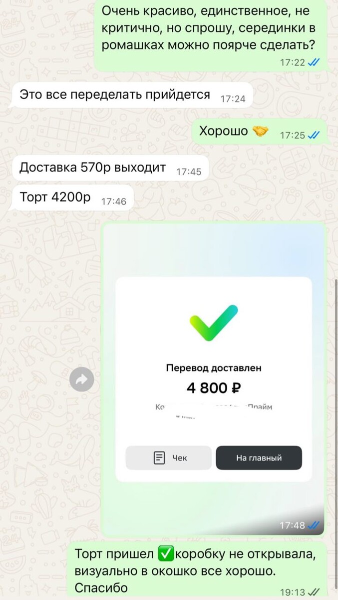 И даже фото готового торта мне прислали на утверждение. Но, когда попросила внести правки, кондитер выставила дополнительную оплату.