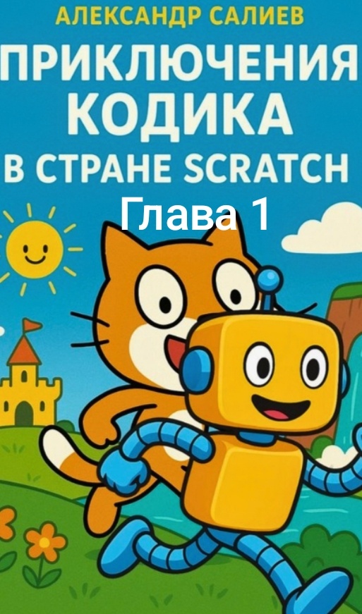 Где-то в глубине цифрового мира жил маленький, блестящий и очень любознательный робот. Его звали Кодик. Он обожал узнавать новое и мечтал однажды научиться создавать настоящие игры такие, в которые будут играть дети по всему миру. Каждое утро Кодик просыпался в своей уютной базе, включал монитор и смотрел, как двигаются цифры и коды. Он ел электронные завтраки и читал статьи о программировании. Эх... вздыхал он, если бы я только мог научиться создавать свои игры! Однажды он услышал от старого принтера удивительную историю: Слышал ли ты о Стране Скретч?прошуршал принтер. Это волшебное место, где всё управляется яркими блоками. Там даже те, кто никогда не писал код, могут создавать настоящие мультфильмы и игры! Глаза у Кодика загорелись. Вот куда мне нужно! Я найду путь в Скретч и стану настоящим программистом! Он собрал рюкзак: зарядное устройство, блокнот с идеями, ключ от своего дома и кусочек запасной схемы на всякий случай. На стене его базы давно висела карта миров прогр