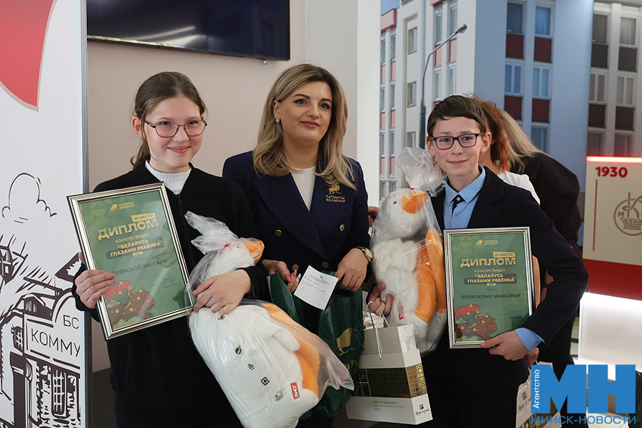 Победителей и призеров республиканского конкурса «Беларусь глазами ребенка» наградили в столице 21 октября, передает корреспондент агентства «Минск-Новости». Чествовали участников творческого проекта, организованного РОО «Патриоты Беларуси», на одном из крупнейших кондитерских предприятий страны. Конкурс объединил десятки белорусов, которые подготовили видеоролики о родных местах, достопримечательностях и красоте Синеокой. Как отметила пресс-секретарь РОО «Патриоты Беларуси» Ирина Синькевич, инициатива родилась буквально из одного ролика, автором которого была семья Бобок из Борисова. Мама 4-летнего Кирилла — победительница ежегодного конкурса молодых семей военнослужащих «Семья — кристалл общества» — рассказала, что задумка появилась спонтанно: — Муж — военнослужащий. Изначально готовились к конкурсу семей: нужно было снять ролик об истории родного края. Заняли первое место в части, потом и на республиканском этапе. Тогда и решили: пусть Кирюша расскажет про наш Борисов в конкурсе «Бе