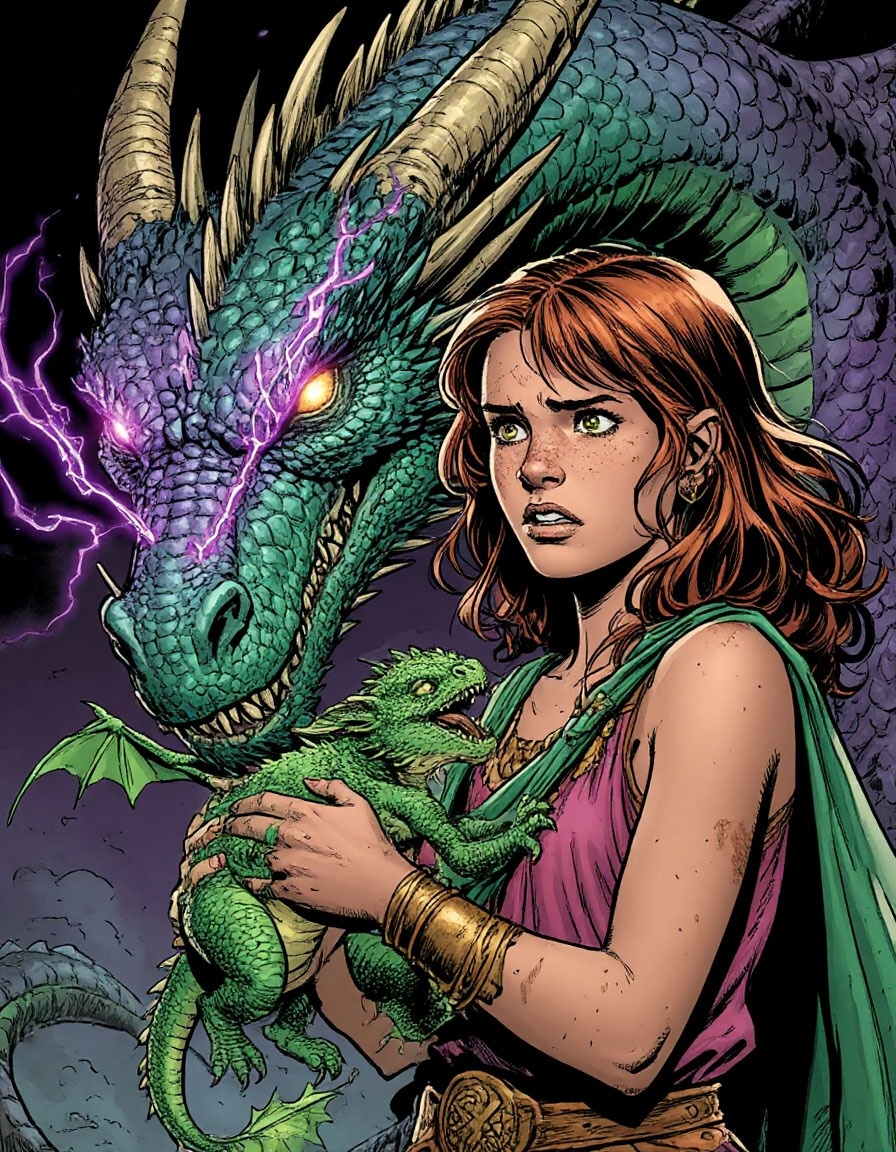 От взрослых древних драконов всегда страдают дети драконов. Так произошло и в этот раз. Больше всего досталось Снежинке. И как бы девочка Лия ни старалась предотвратить неизбежное не получилось... Здравствуйте мои дорогие и любимые читатели, подписчики и гости канала. Берегите своих детей от посторонних влияний. Продолжаю комикс о драконах, людях и древних легендах. Он не бесконечный и конец очень скоро... Деревня празднует победу – костры, музыка, смех. Люди и драконы вместе едят за одним столом. Только Снежинка сидит в стороне, уставившись на горы. Её глаза отражают не пламя костра, а странный голубой свет. Лия первая заметила – её дракониха слишком часто смотрела туда, где спал Прародитель. Как будто... слышала зов. Ночь. Лия пробирается за Снежинкой, которая уходит к реке. Дракониха опускает морду в воду – и там, в отражении, видно не её лицо, а огромный горящий глаз! — Снежинка? — дрожит Лия. Но дракониха не реагирует. Она словно в трансе. Утром Эльза осматривает Снежинку. На шее